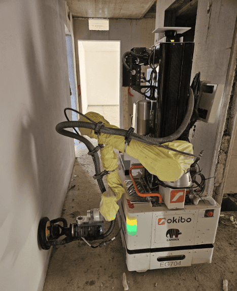 We recently announced the national launch of the EG7+ robot. Okibo’s fully autonomous, AI-guided painting and drywall finishing robot debuted this fall at Federal and AEC Innovation Day in Phoenix, AZ hosted by Hensel Phelps, receiving enthusiastic feedback from AEC industry attendees.