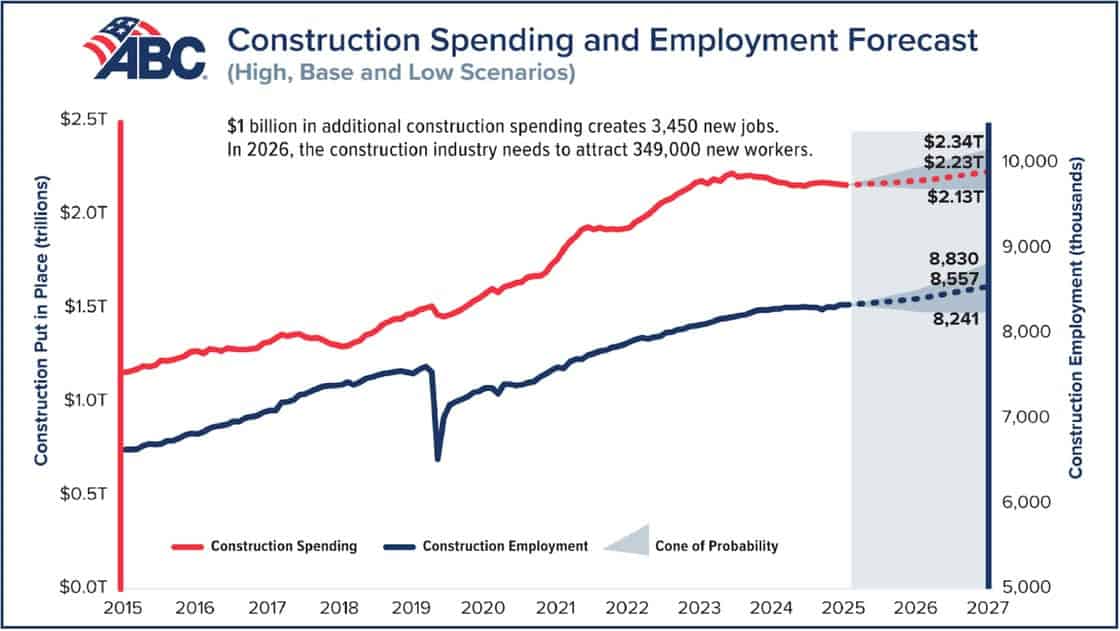 According to the most recent report from Associated Builders and Contractors, the construction industry will need to attract an estimated 349,000 net new workers to keep up with demand this year and even more (456,000) in 2027.